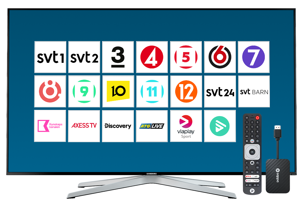 Med det grundläggande paketet Sappa Bas får du 20 kanaler med populära program, nyheter och sport. 20 TV-kanaler som du kan se både i din TV och strramat genom Sappa Play på mobil, surfplatta eller Smart-TV.